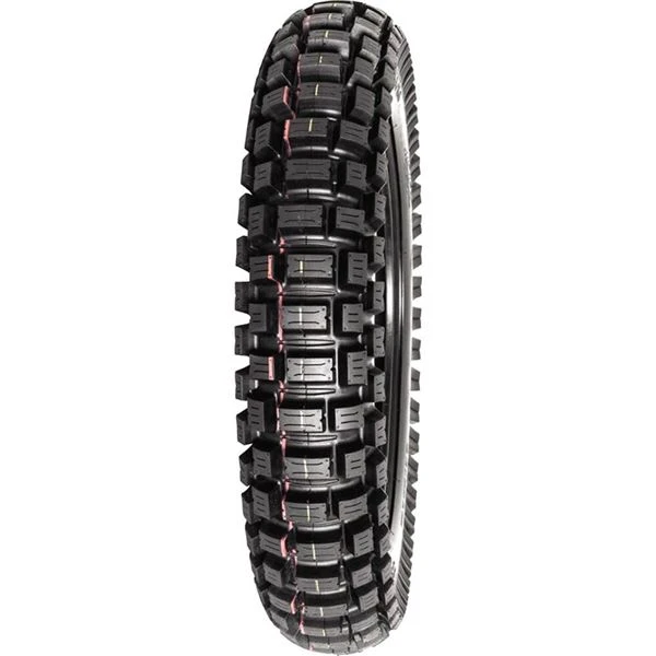 Take on muddy bogs and extreme conditions with the hybrid motorcycle tire with an aggressive tread. The tire is designed both to handle off road terrain but with a trials tire construction.