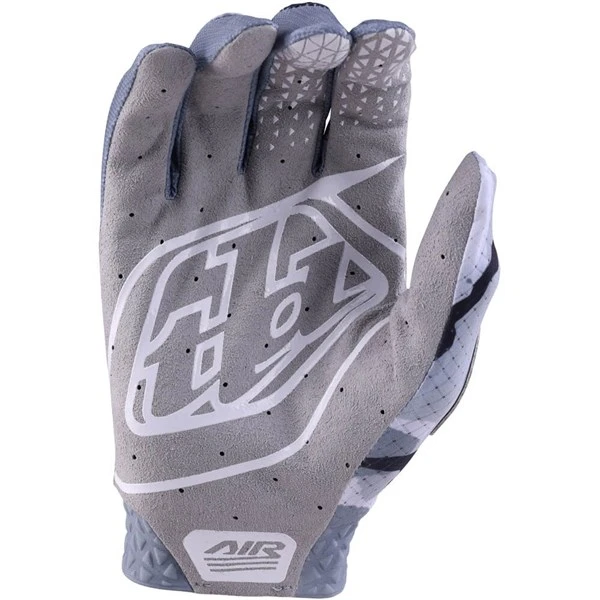 The Air Glove features a compression molded cuff and a single layer palm with laser perforated holes for breathability. Micro mesh is used all over for added ventilation. Silicone print on finger offers a grippy spot for brake lever grip.