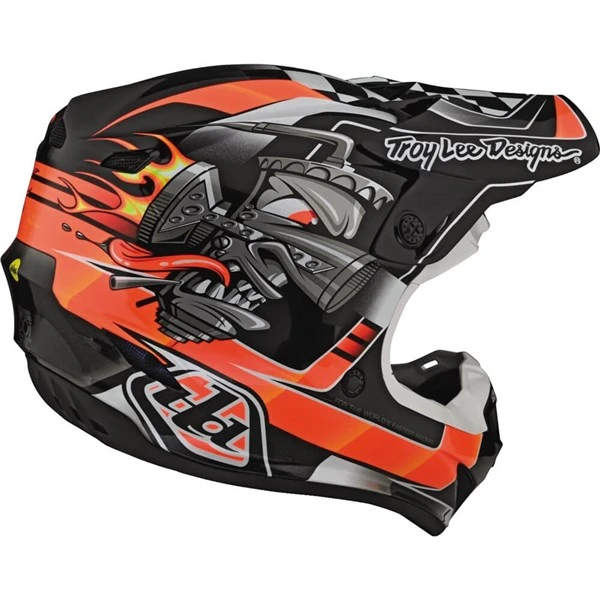 Troy Lee Designs SE4 Polyacrylite helmet comes with MIPS, incorporating brain rotational protection. This helmet comes with sixteen intake ports to channel cool air around and over a rider’s head, forcing hot air out through six rear exhaust ports.